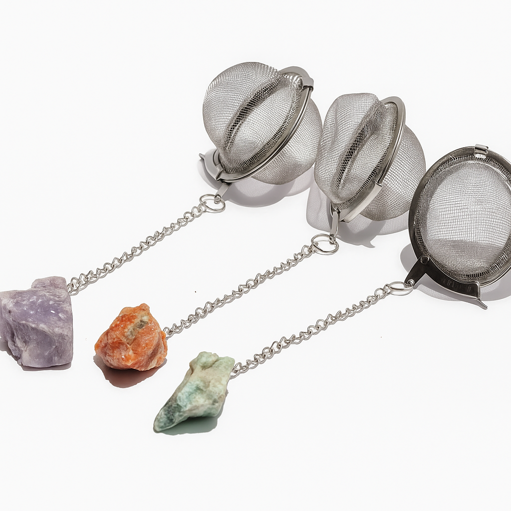 🌿 Natural Stone Handle – Each steeper features a raw, earthy stone that adds calming energy to your tea time.